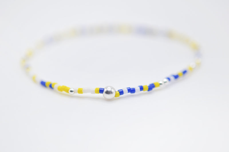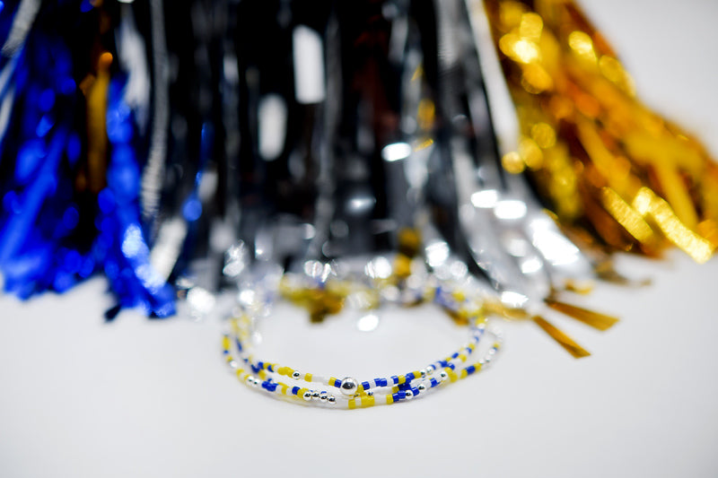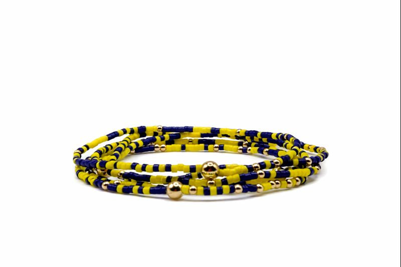 Bold spirit meets effortless style. Game Day Gold is the ultimate pep-rally bracelet, designed in iconic maize yellow and deep navy blue with luxe gold accents that shine from kickoff to celebration.