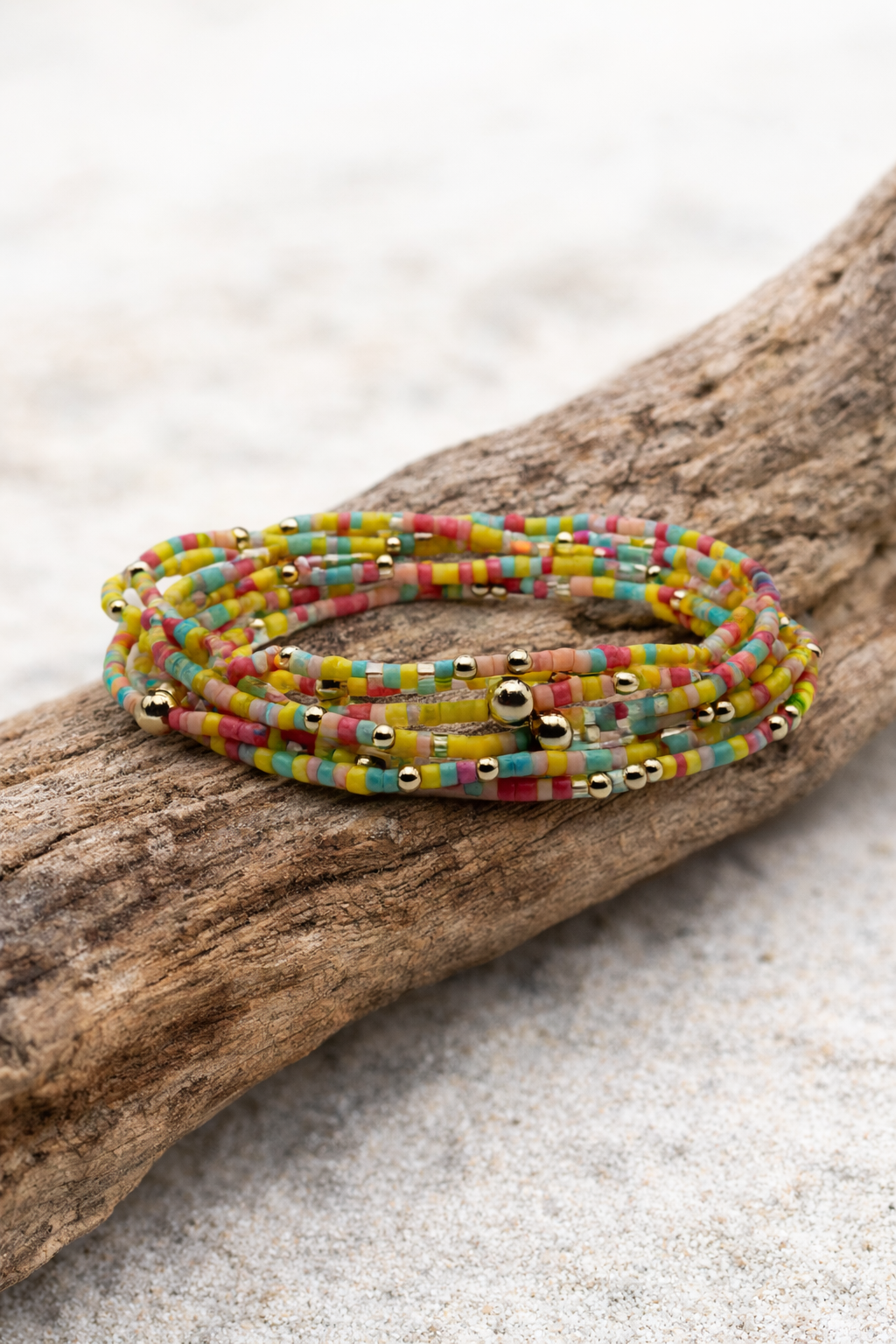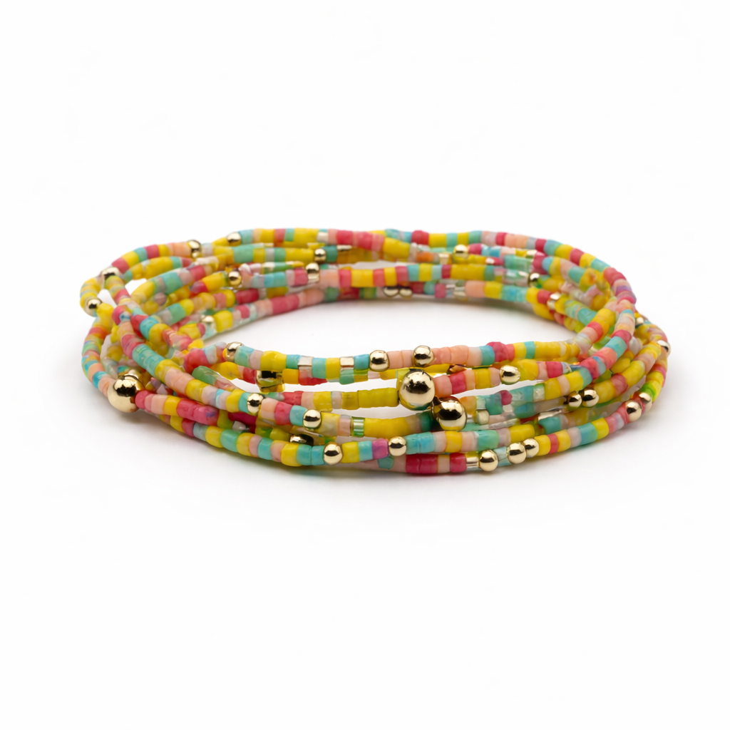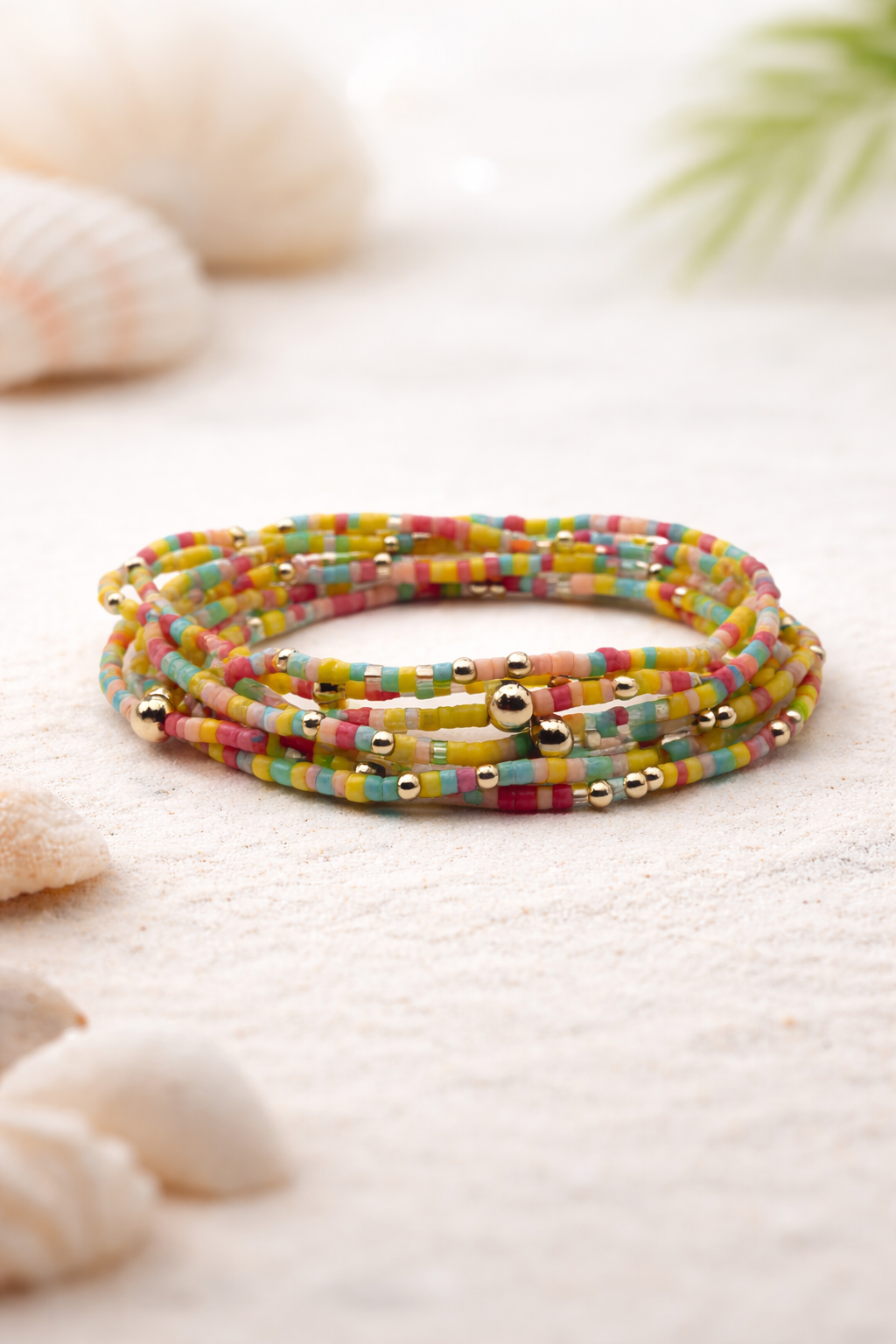 Whether you're heading to a festival, a brunch date, or simply want to add a dash of fun to your everyday look, this bracelet is your go-to accessory. Let the dynamic combination of gold and playful beads reflect your vibrant spirit and turn any moment into a celebration.